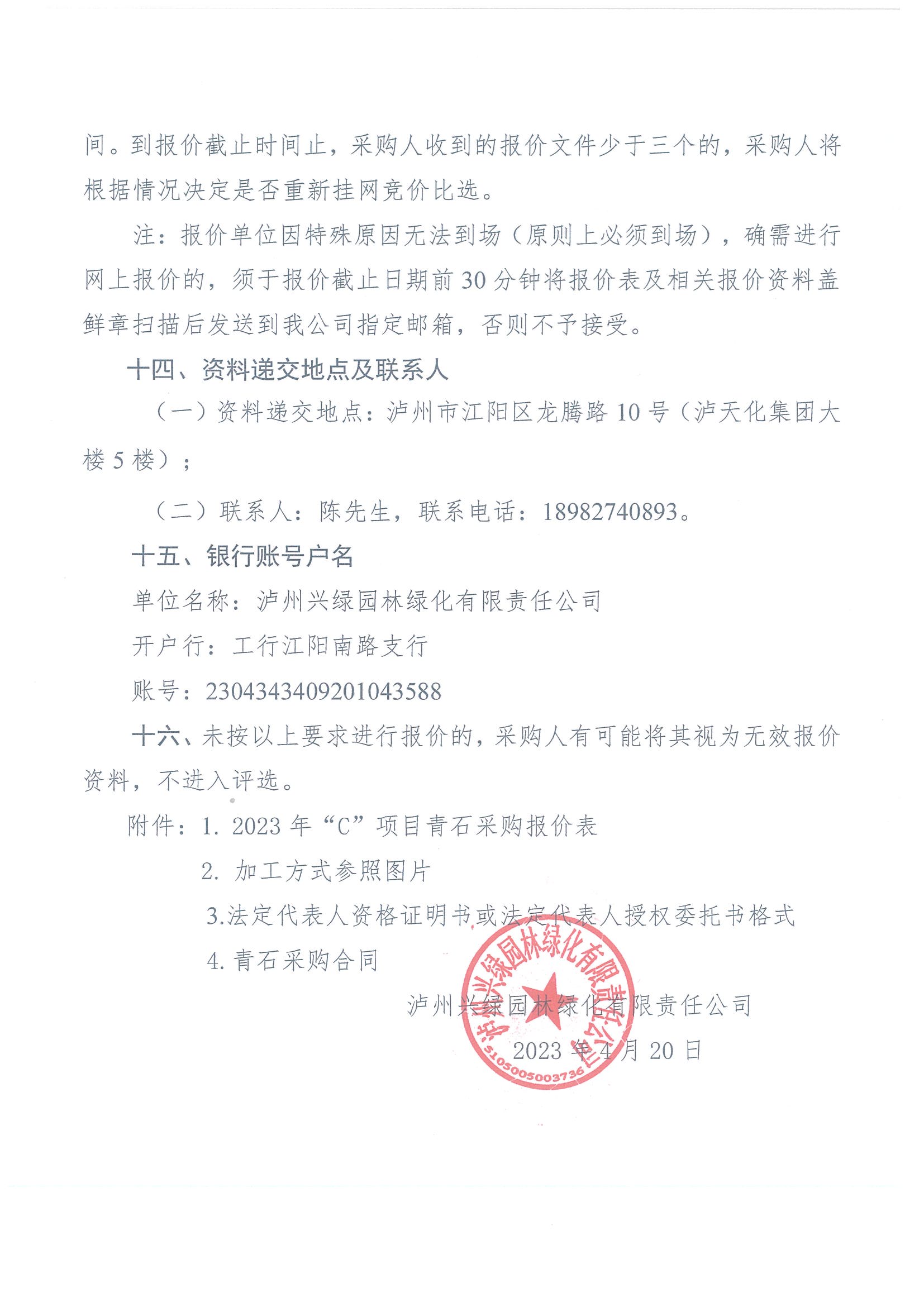 2023年“C”項目采購青石詢價公告(第二次)