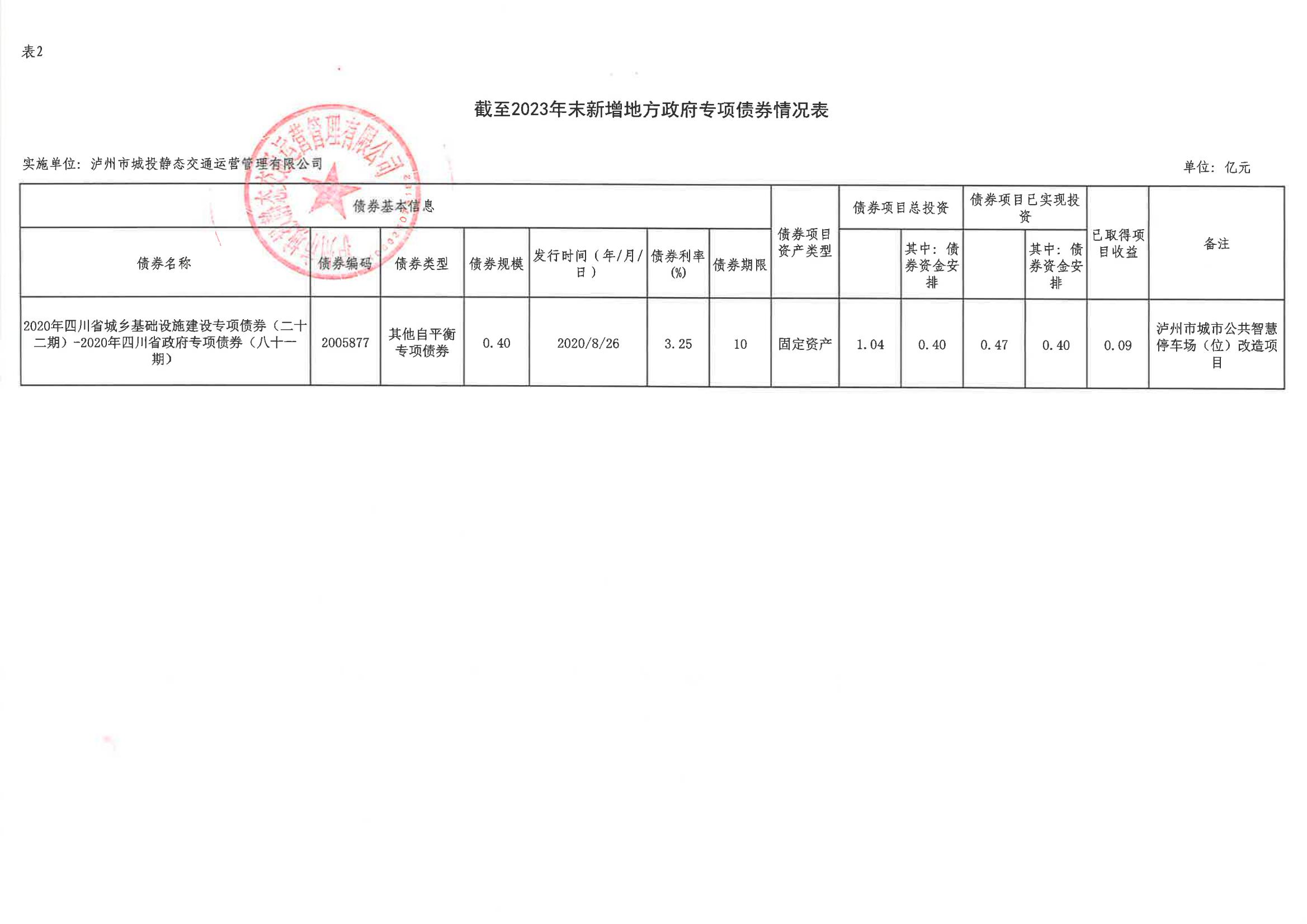 智慧停車場(chǎng)(位)改造項(xiàng)目截至2023年末新增地方政府專項(xiàng)債券情況公示